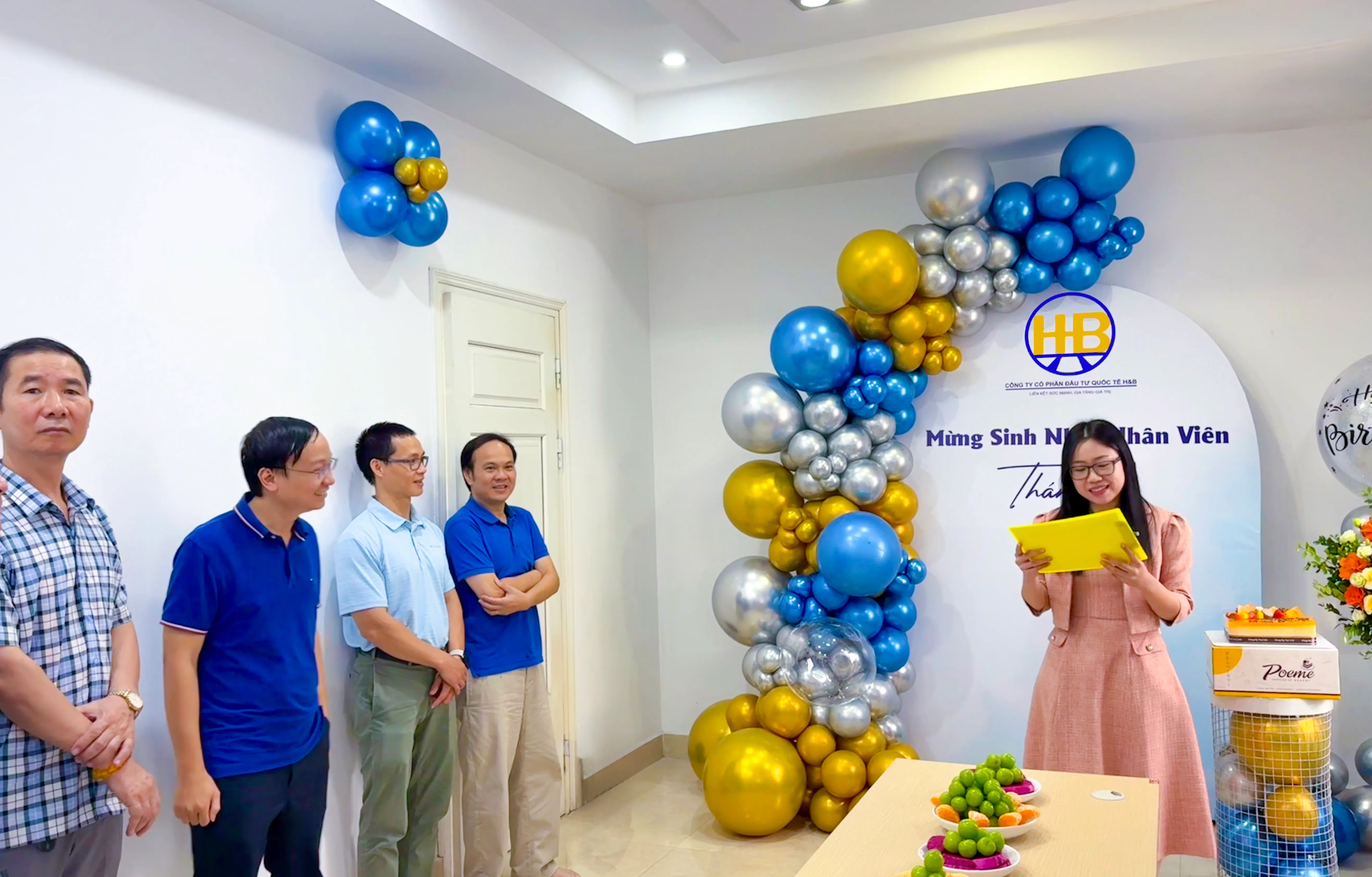 Ngay từ khi bước vào, các thành viên H&B đã được chào đón bởi không gian trang trí rực rỡ với bóng bay, backdrop và bánh sinh nhật được chuẩn bị chu đáo. Điều này tạo nên không khí ấm áp và háo hức trước khi bữa tiệc bắt đầu.