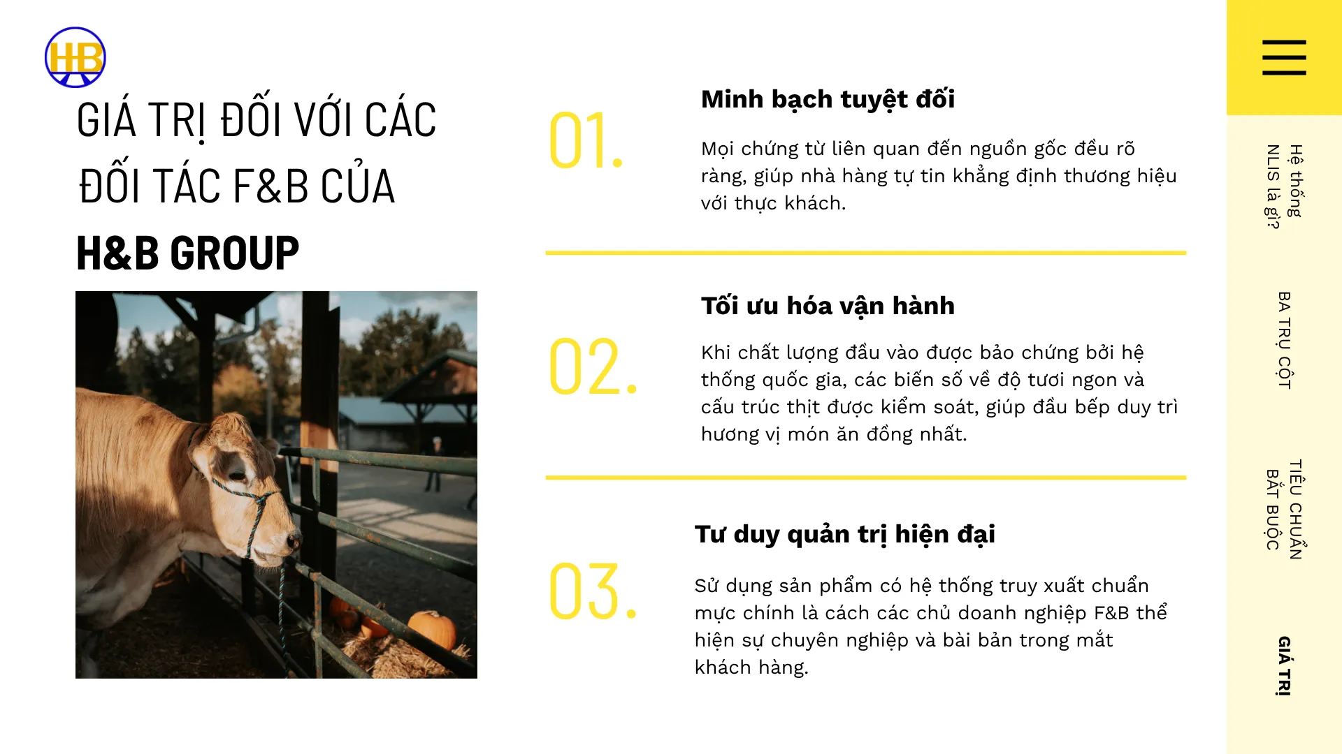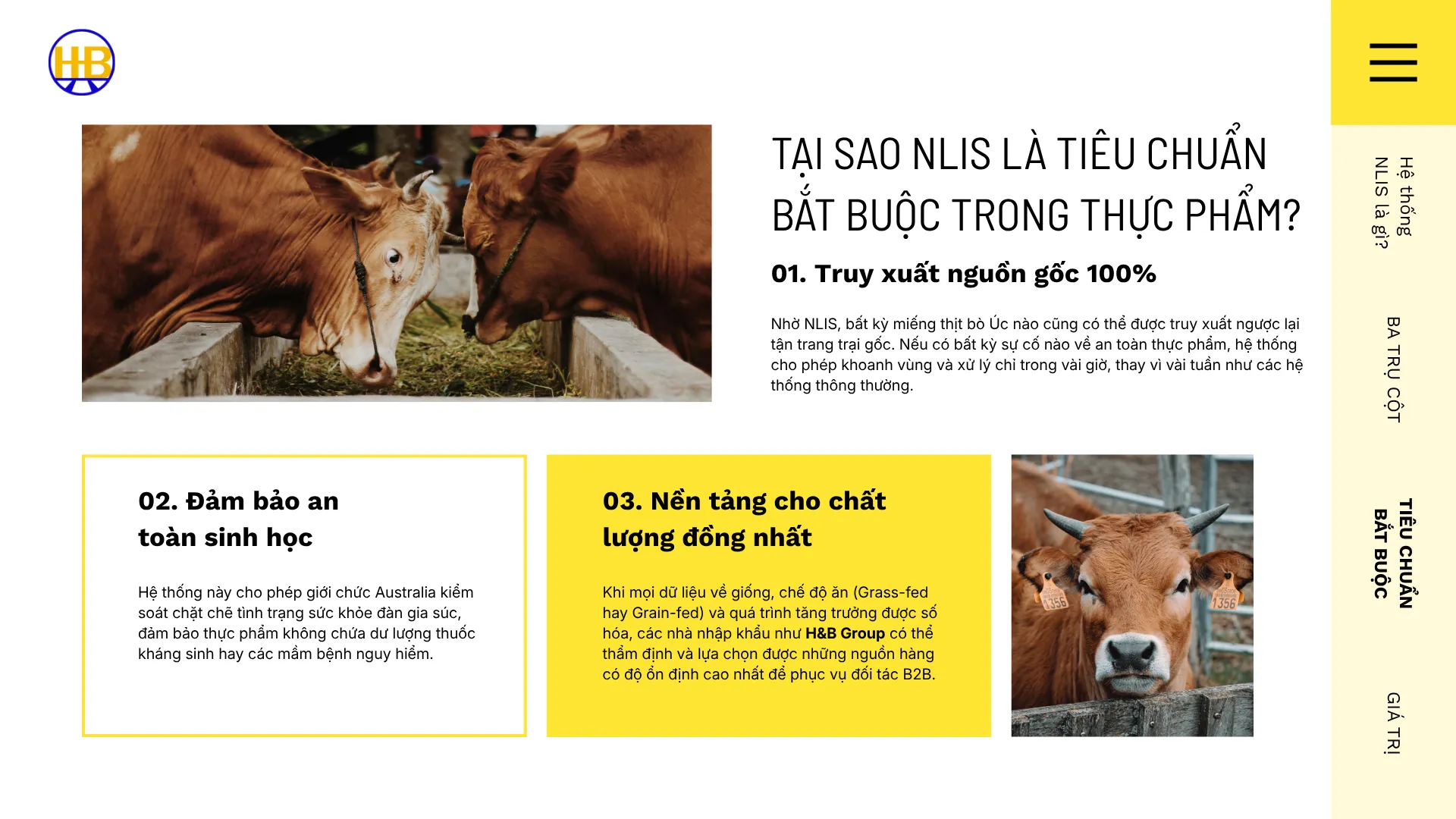 Khi mọi dữ liệu về giống, chế độ ăn (Grass-fed hay Grain-fed) và quá trình tăng trưởng được số hóa, các nhà nhập khẩu như H&B Group có thể thẩm định và lựa chọn được những nguồn hàng có độ ổn định cao nhất để phục vụ đối tác B2B.