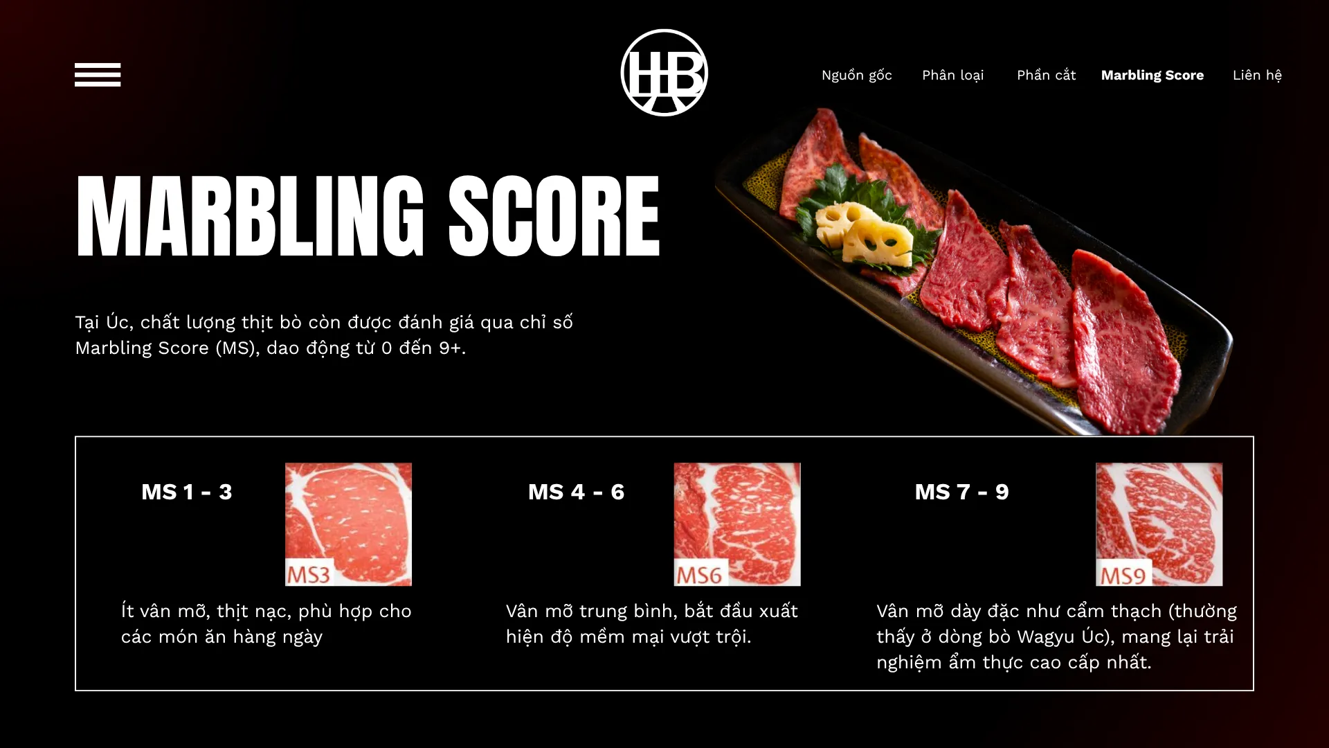 - Từ MS 7 đến 9+ với vân mỡ dày đặc như cẩm thạch, thường thấy ở bò Wagyu Úc, đem đến trải nghiệm ẩm thực cao cấp nhất.