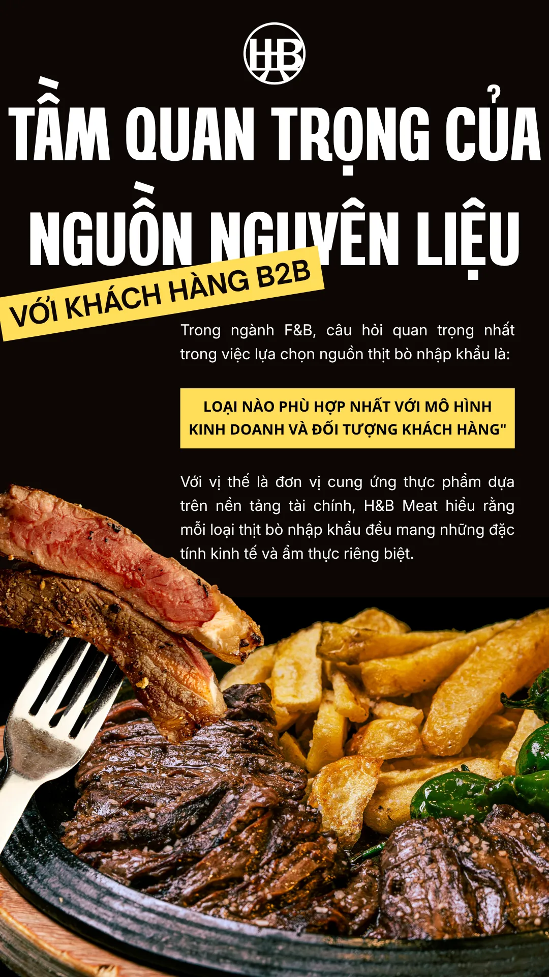 Trong ngành F&B, việc lựa chọn nguồn thịt bò nhập khẩu không chỉ dừng lại ở câu hỏi "loại nào ngon hơn", mà phải là "loại nào phù hợp nhất với mô hình kinh doanh và đối tượng khách hàng". Với vị thế là đơn vị cung ứng thực phẩm dựa trên nền tảng tài chính, H&B Meat hiểu rằng mỗi loại thịt bò nhập khẩu đều mang những đặc tính kinh tế và ẩm thực riêng biệt.